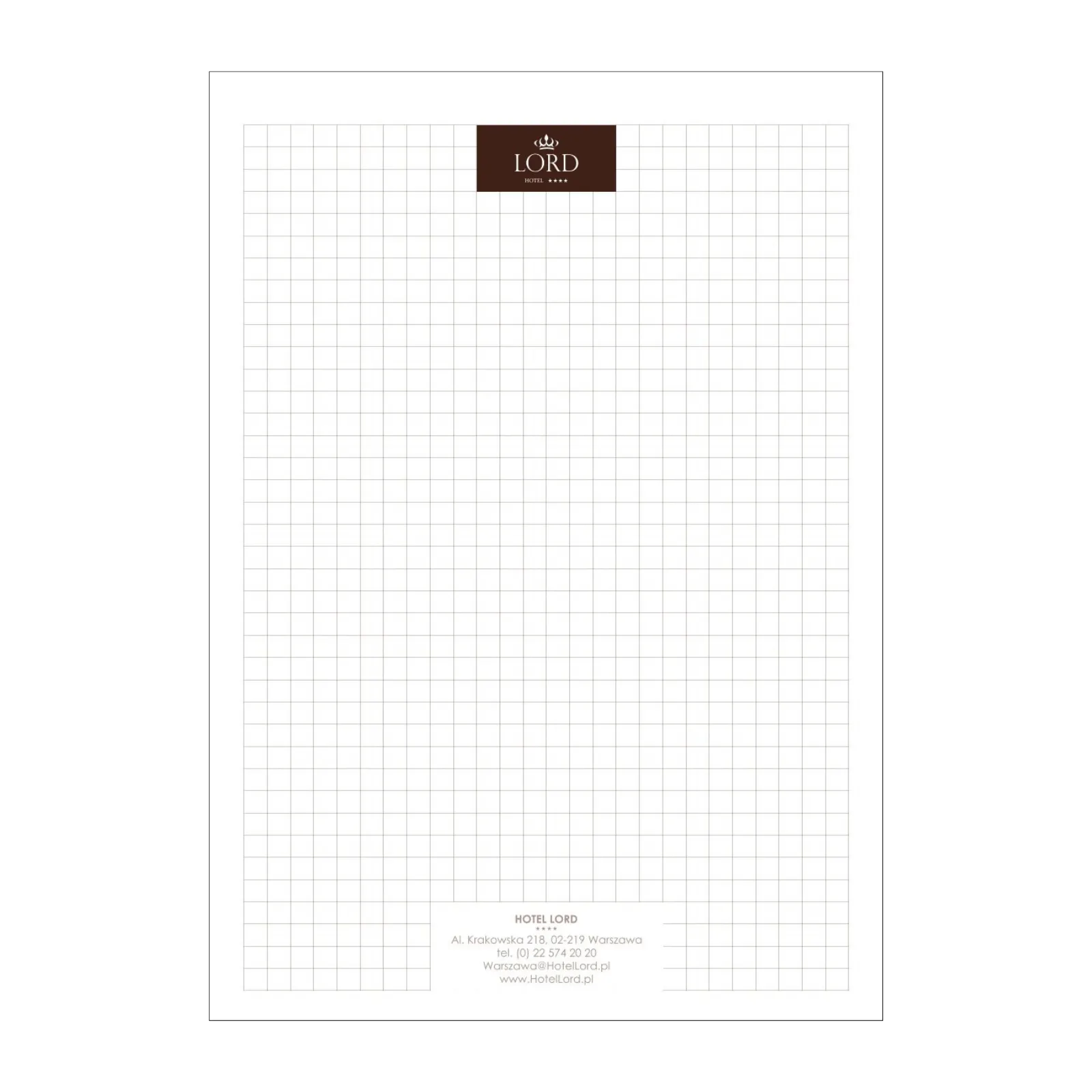 Przygotowany został element identyfikacji wizualnej: notatnik w kratkę.