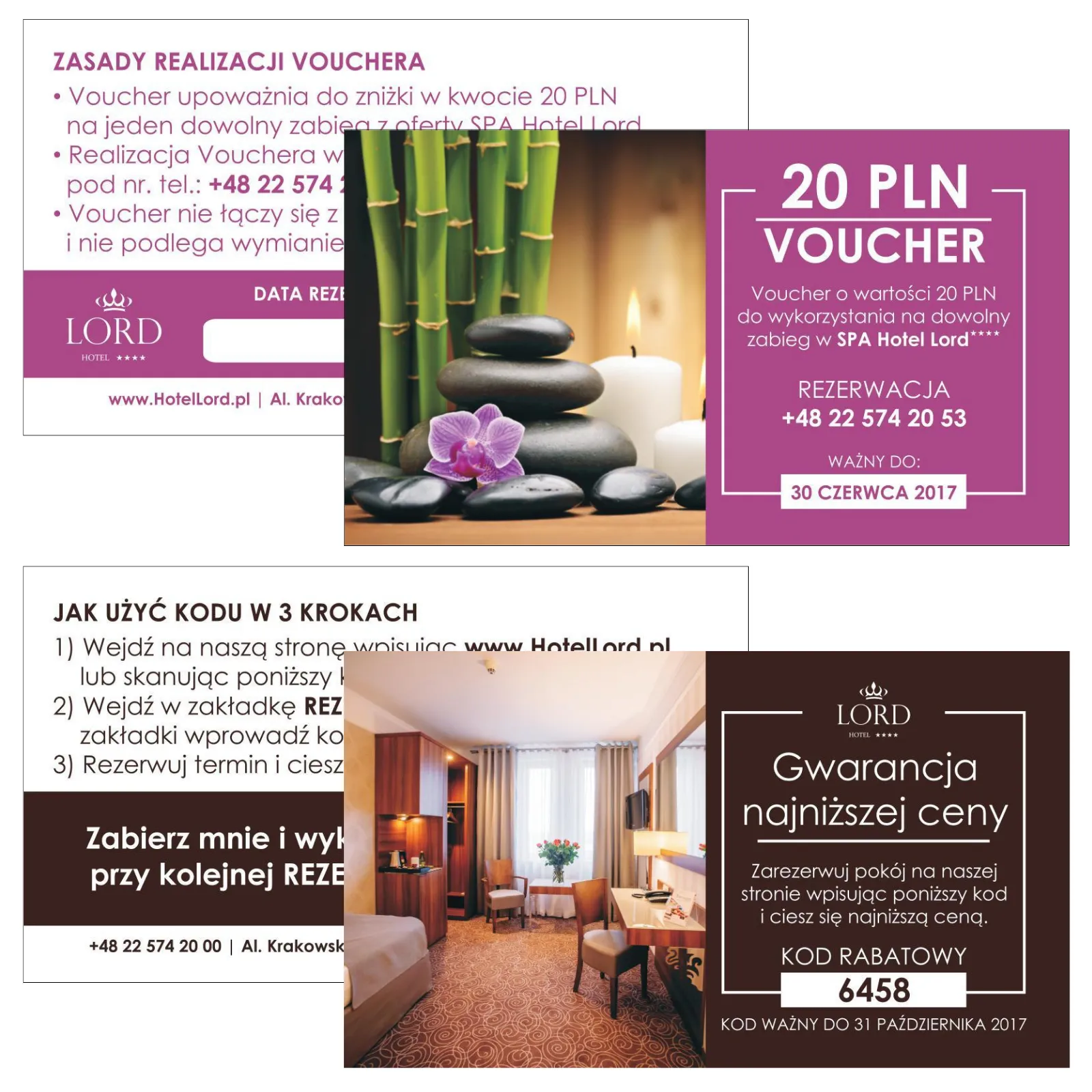 Przygotowane zostały: Voucher do SPA oraz bon z kodem na rezerwację.